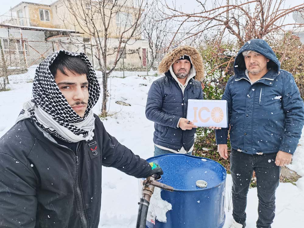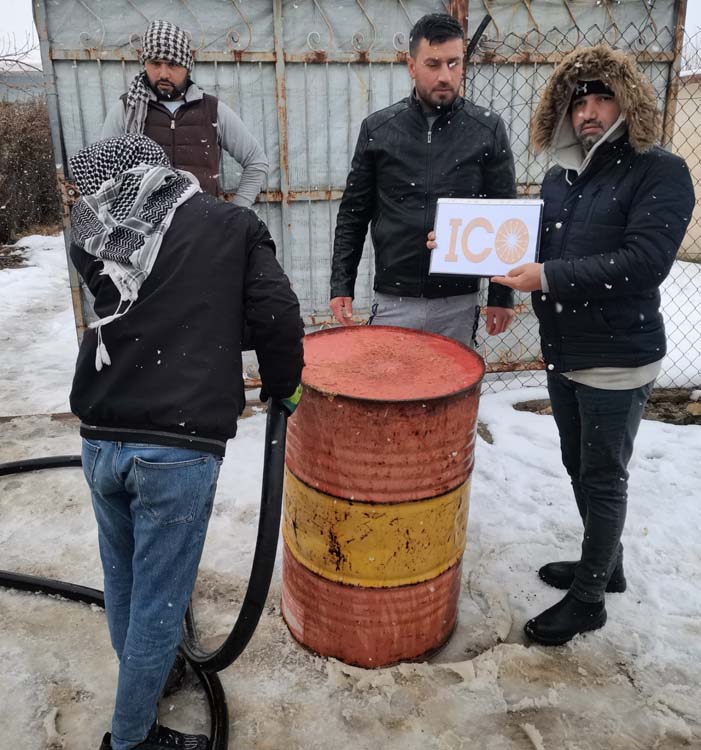 Nachdem der sehr aktive chaldäische Pfarrer von Enishke im Nordirak, Samir Youssif, bereits im Jänner dank Spenden der ICO eine Verteilung von Heizmaterial an die jesidischen Flüchtlinge in einem Vertriebenen-Camp in der Nähe von Enishke organisiert hatte, folgte Anfang Februar eine weitere, von der ICO mit 9.000 € finanzierte, Verteilung von je 200 Litern Kerosin an syrische Kriegsflüchtlinge sowie an bedürftige einheimische Familien in den Dörfern Enishke, Benatha, Araden und Hamzi, die alle zum Pfarrgebiet von Samir Youssif gehören.
