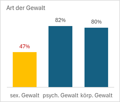 Fast die Hälfte der Betroffenen (47%) meldeten Vorfälle zu sexueller Gewalt.
